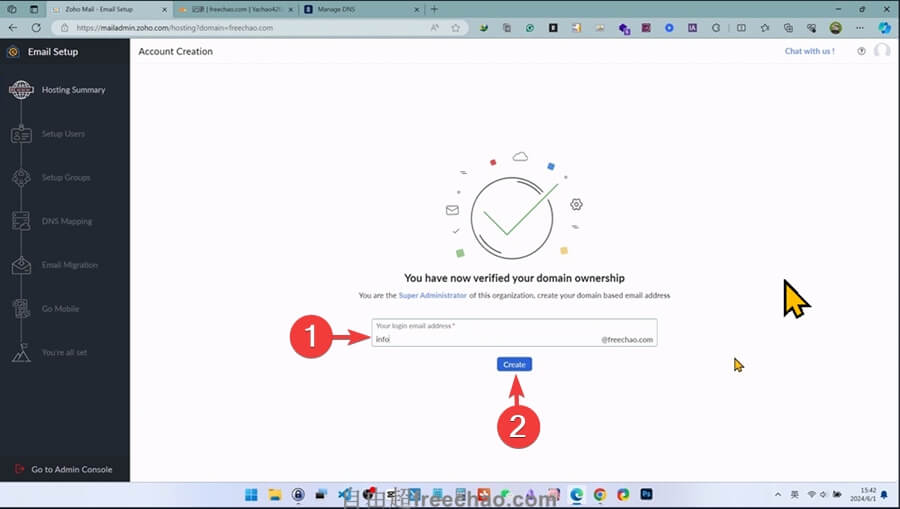 步骤8:创建管理员登录邮箱