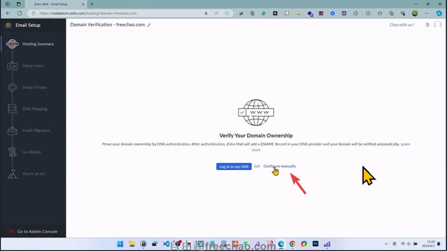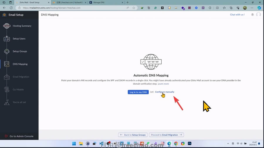 点击【configure manually】手动添加DNS解析。