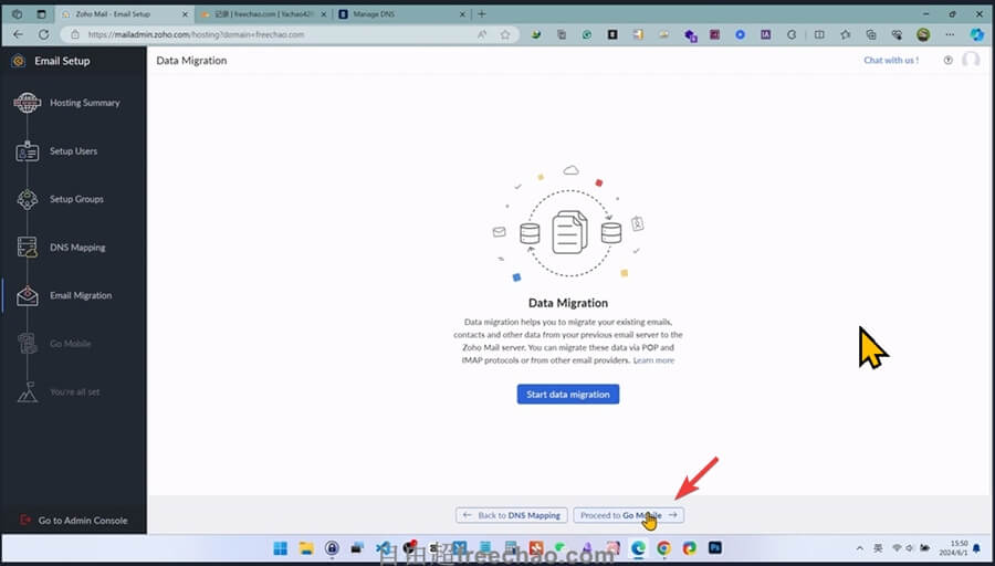 添加验证成功后,点击【Proceed to Email Migration】进入下一步